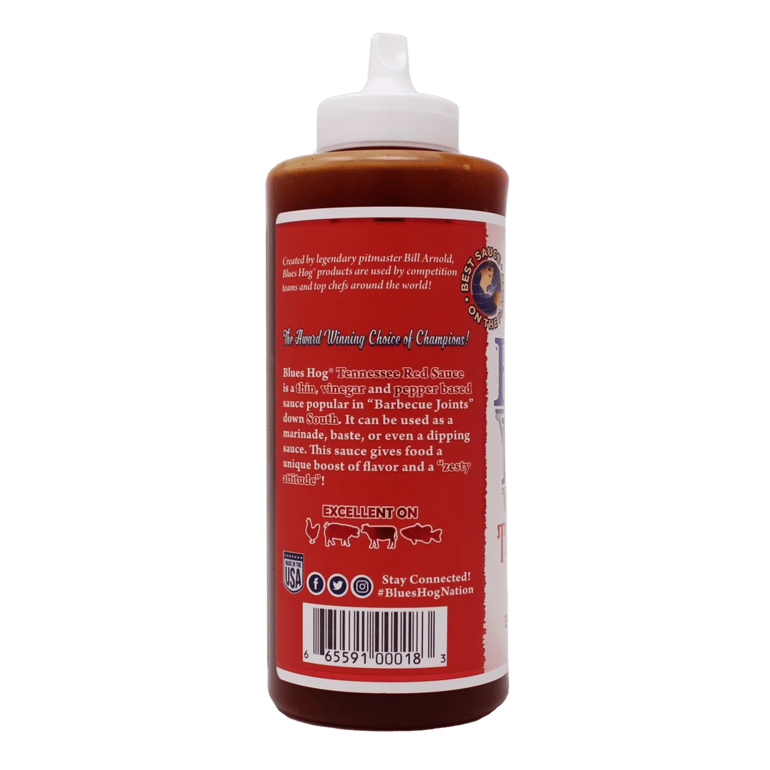 A thin vinegar and pepper based sauce popular in Southern Barbecue Joints.  Blues Hog Tennessee Red sauce can be used as a marinade, baste or even a dipping sauce. Excellent on pork and beef sandwiches, this sauce gives food a unique boost of flavor with a “zesty attitude”! GLUTEN FREE.