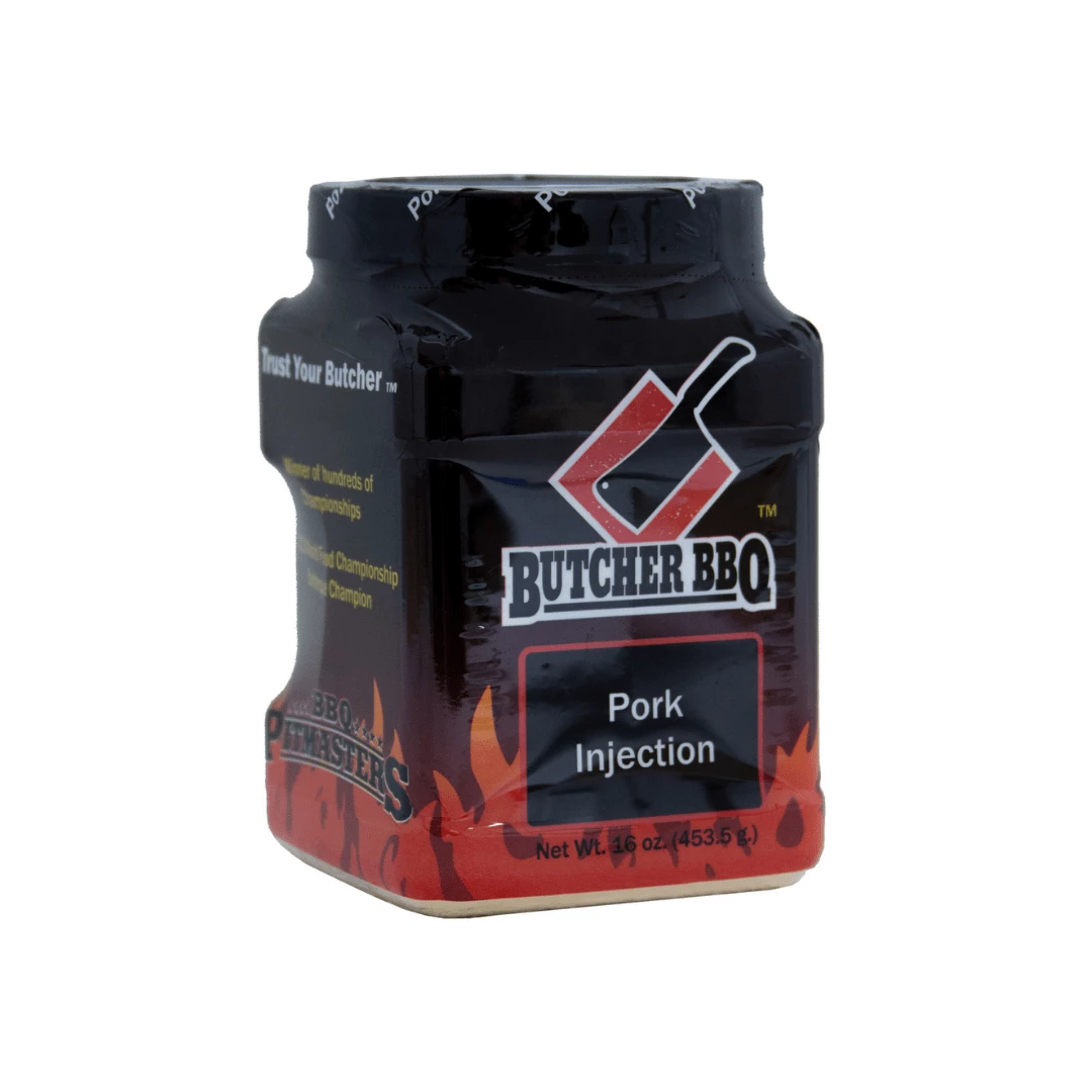 The Butcher BBQ Pork Injection will give you that great deep pork flavor and still keep the moisture. Cooking with this has been proven a winner countless times. The Butcher BBQ Pork Injections are the only one on the market that come with an easy to seal canister.