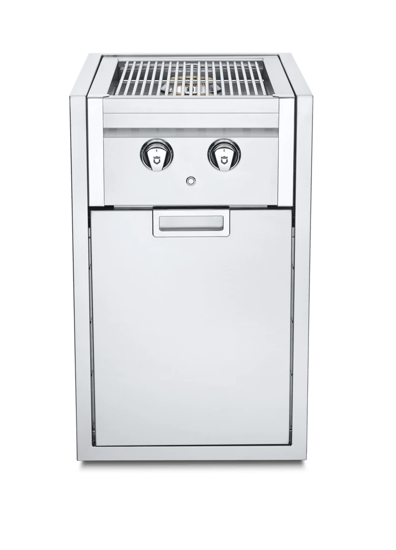 The Infinite Series side burner is perfect for increasing the cooking capabilities of any Crown Verity outdoor kitchen. This unit has two (2) 12,000 BTUH burners with a cabinet below. Includes stainless steel cover.