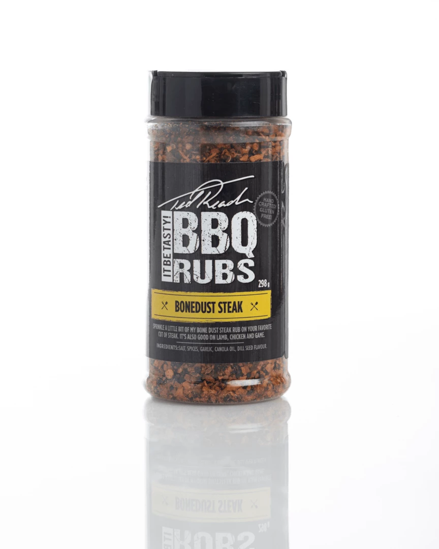 “My favorite food is steak. I love it! I could eat it every day, but my wife and doctor won’t approve of that! But when I do eat steak, I like to spice it up. My Bone Dust Steak Spice is loaded with flavor. Coarsely ground black pepper, garlic, onion, coriander and a hint of dill. It’s mighty tasty. You don’t need a lot, a little will go a long way! Rub it into your favorite cut of steak! Any steak and lamb too!”