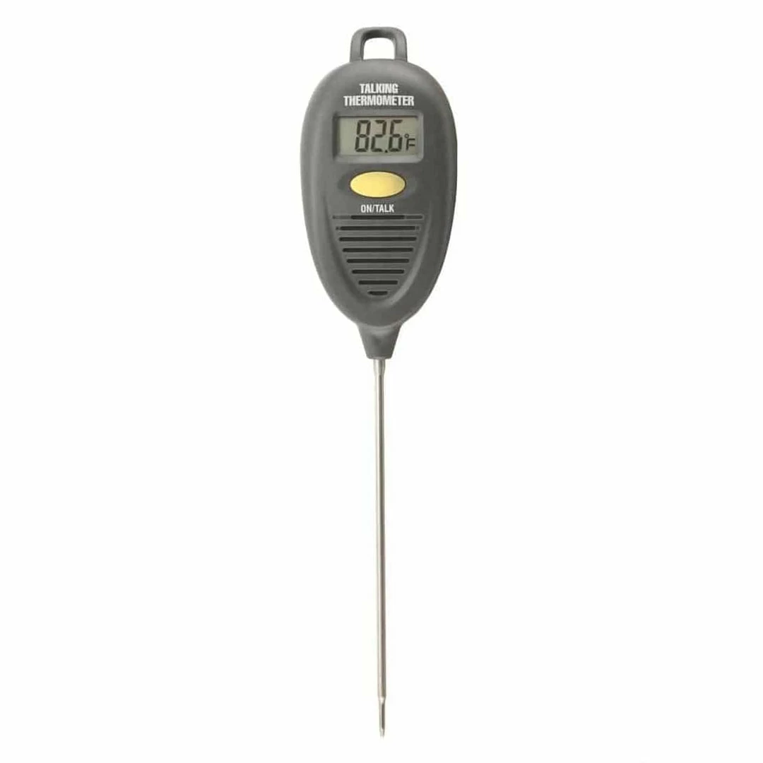 The Digital Talking Thermometer is suitable for the sight impaired with partial or full vision loss. For the sighted, the large 3/8″ digits are easier-to-read. Even those that can see the display need not take their eyes off other tasks if they can simply push the ‘Talk’ button to tell them the temperature. Press it again and again to update the status of changing temperatures. The ThermoWorks Digital Talking Thermometer is a tremendous aid in food preparation, general household use or even scientific and industrial applications.