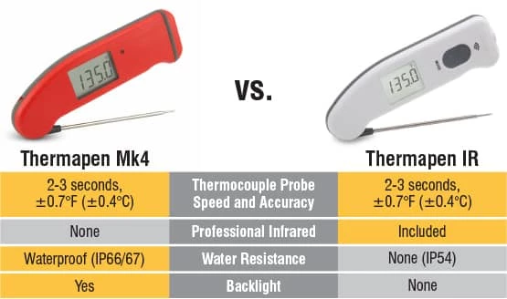 Thermapen IR combines the unparalleled speed and accuracy of the Thermapen Mk4 with the versatility of an instrument-grade infrared sensor for instant non-contact surface readings. Why carry two different thermometers when you can just carry the Thermapen IR?