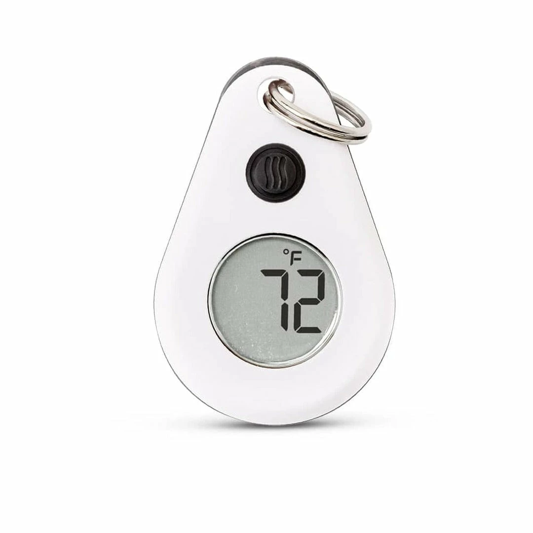 For all of your ambient temperatures on the go, you need ThermoDrop (patent pending). ThermoDrop attaches to your jacket zipper or any place you can attach a key ring. Small enough so that it can be placed inconspicuously but big enough to do the job well. The auto-rotating display and big digits mean you can read the temperature from any angle. Whether hiking, biking, skiing, camping, or just out for an evening stroll, ThermoDrop gives you the temperature of the great outdoors. It will even tell you how cold it got overnight with the Max/Min readings. And, with the IP67 rating, you are protected from splashes and unexpected rain showers. ThermoDrop is perfect for indoor temperatures too! Hang in fridges, freezers, or anywhere you need an ambient measurement.