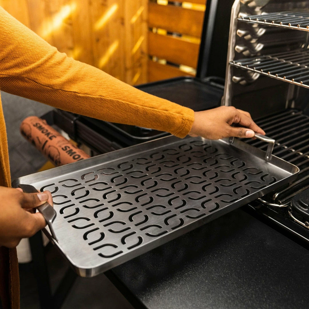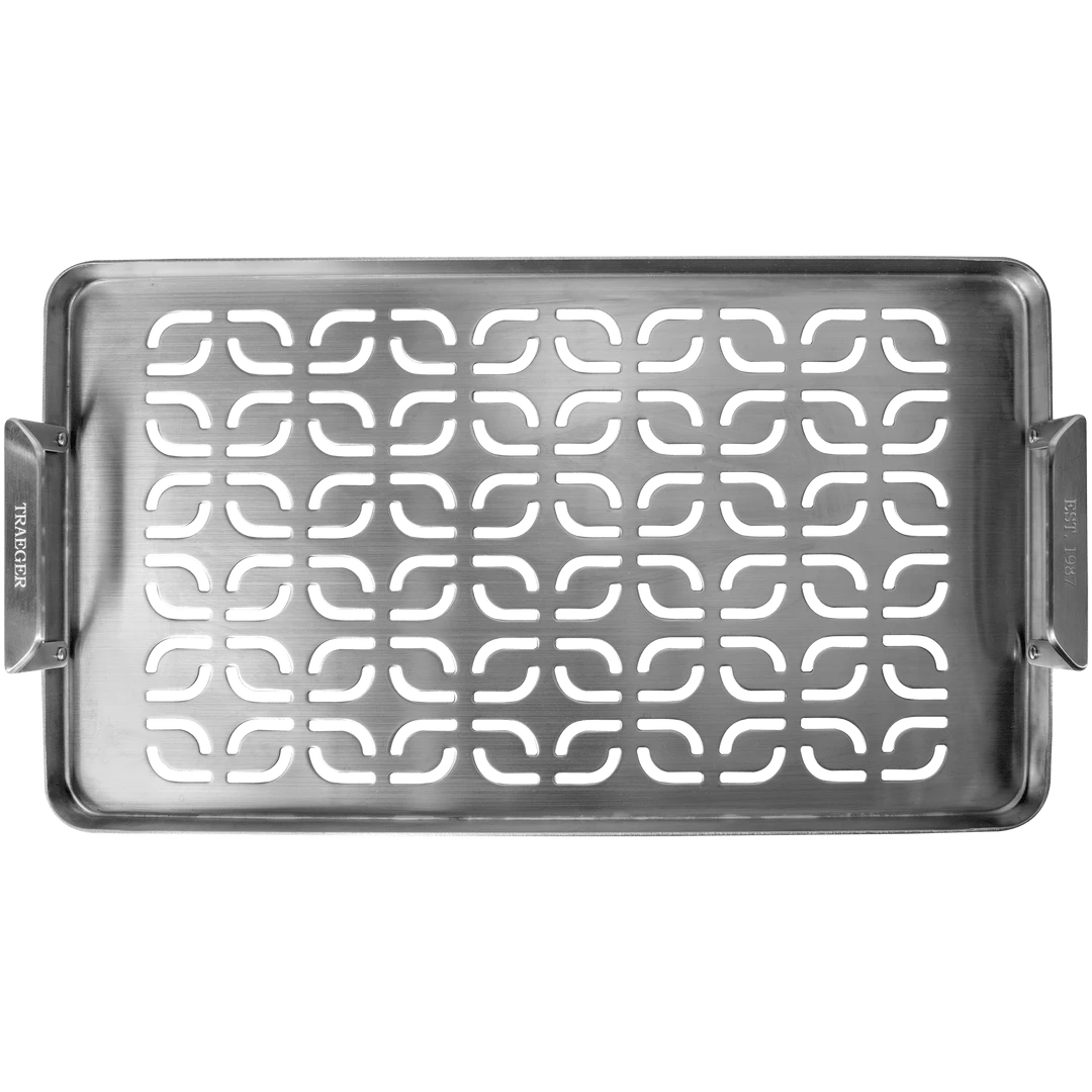 Prevent small food items such as shrimp, veggies, meatballs, and more from falling through grill grates with the Traeger ModiFIRE® Fish & Veggie Stainless Steel Grill Tray. It fits securely on the grates of ModiFIRE-compatible Traeger wood pellet grills for cooking convenience, and it’s made with stainless steel to prevent corrosion and allow easy cleaning.