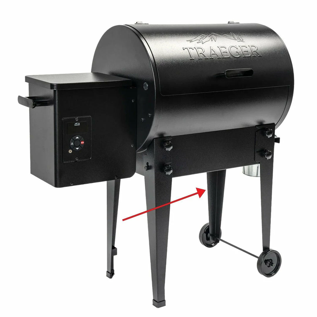 Replacement Right Rear Leg Assembly for Traeger Tailgater 20 Pellet Grill (models that start with TFB30 or BBQ155). Sold Individually. Wheels and Axle Rod Sold Separately.
