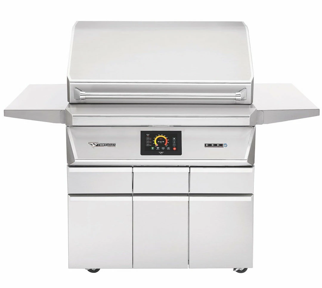 Compatible with the 36″ pellet grill. This integrated grill base offers portability and a freestanding option compatible with our 36″ pellet grill. Standard features include soft-closing doors and center pellet storage drawer, fold-down side shelves with tool holders, and heavy-duty casters with front brakes for easy maneuverability and locking.