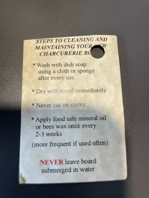 The product you receive may vary slightly from the product photo due each charcuterie board being 100% handmade.