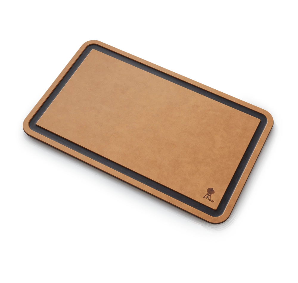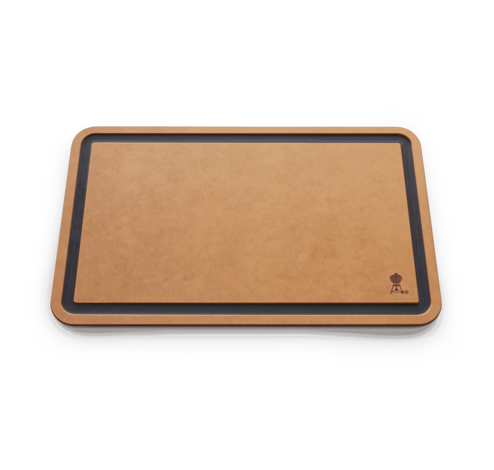 The cutting board’s grooved design catches meat juices for mess-free carving. It’s the perfect size for prepping and serving on your Weber grill side table.