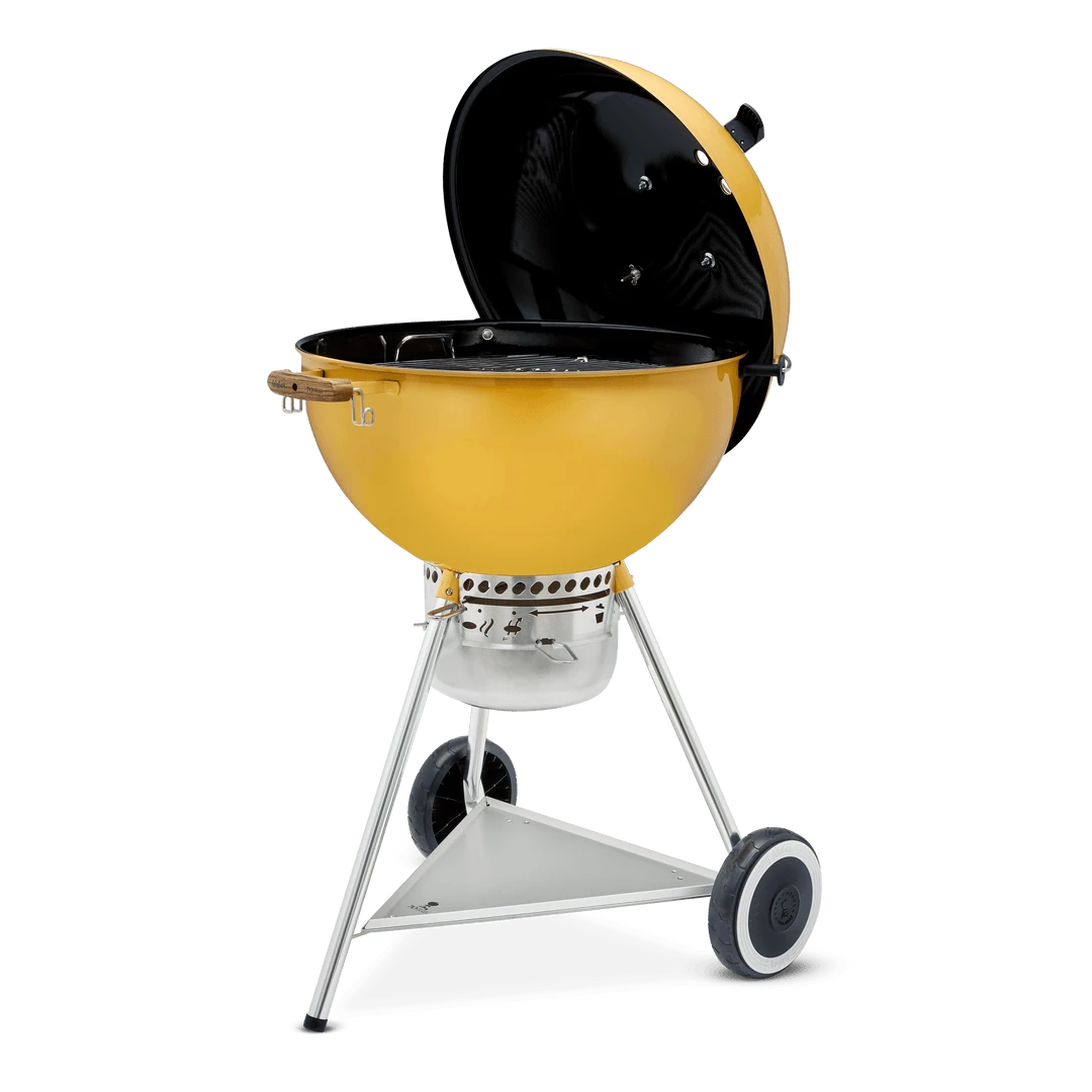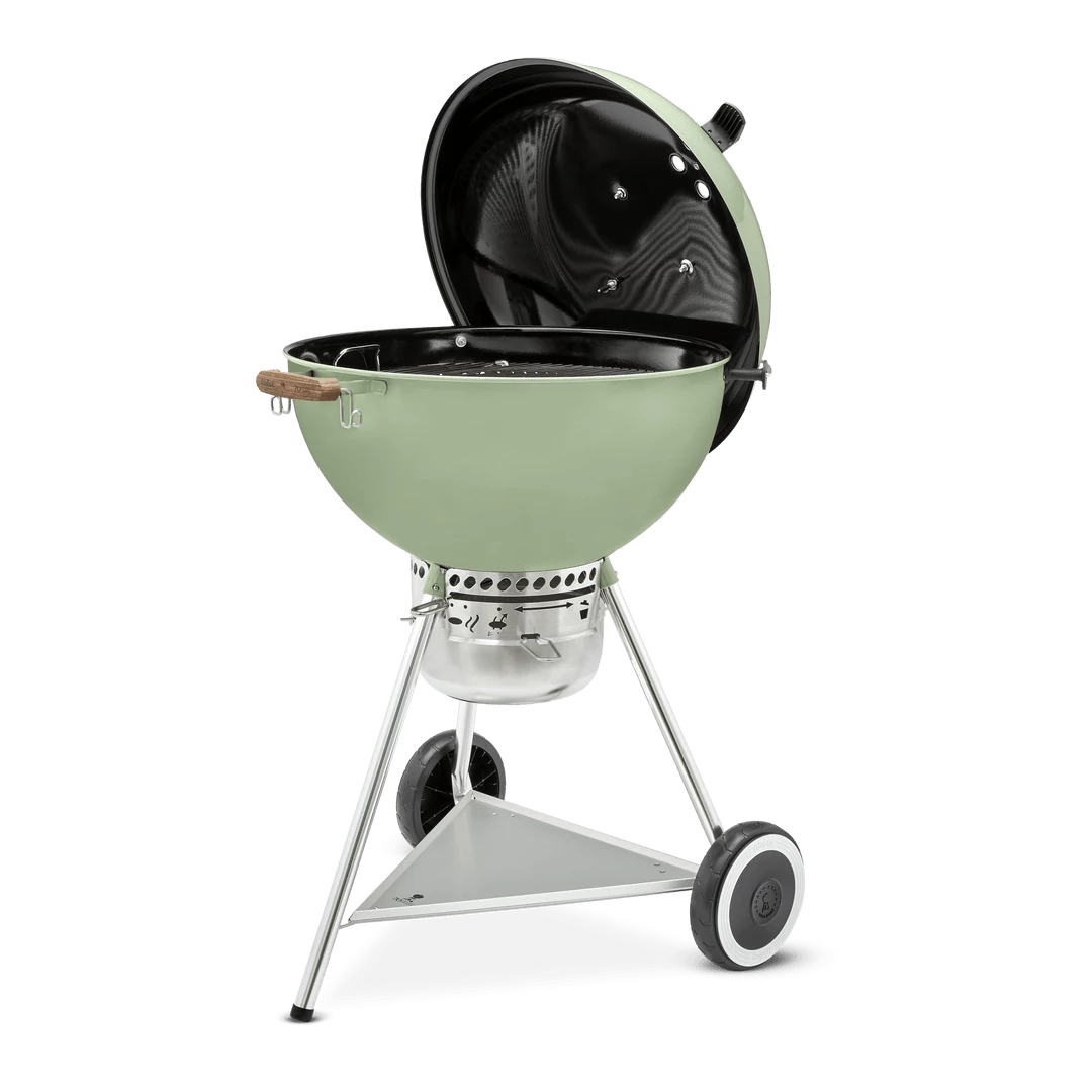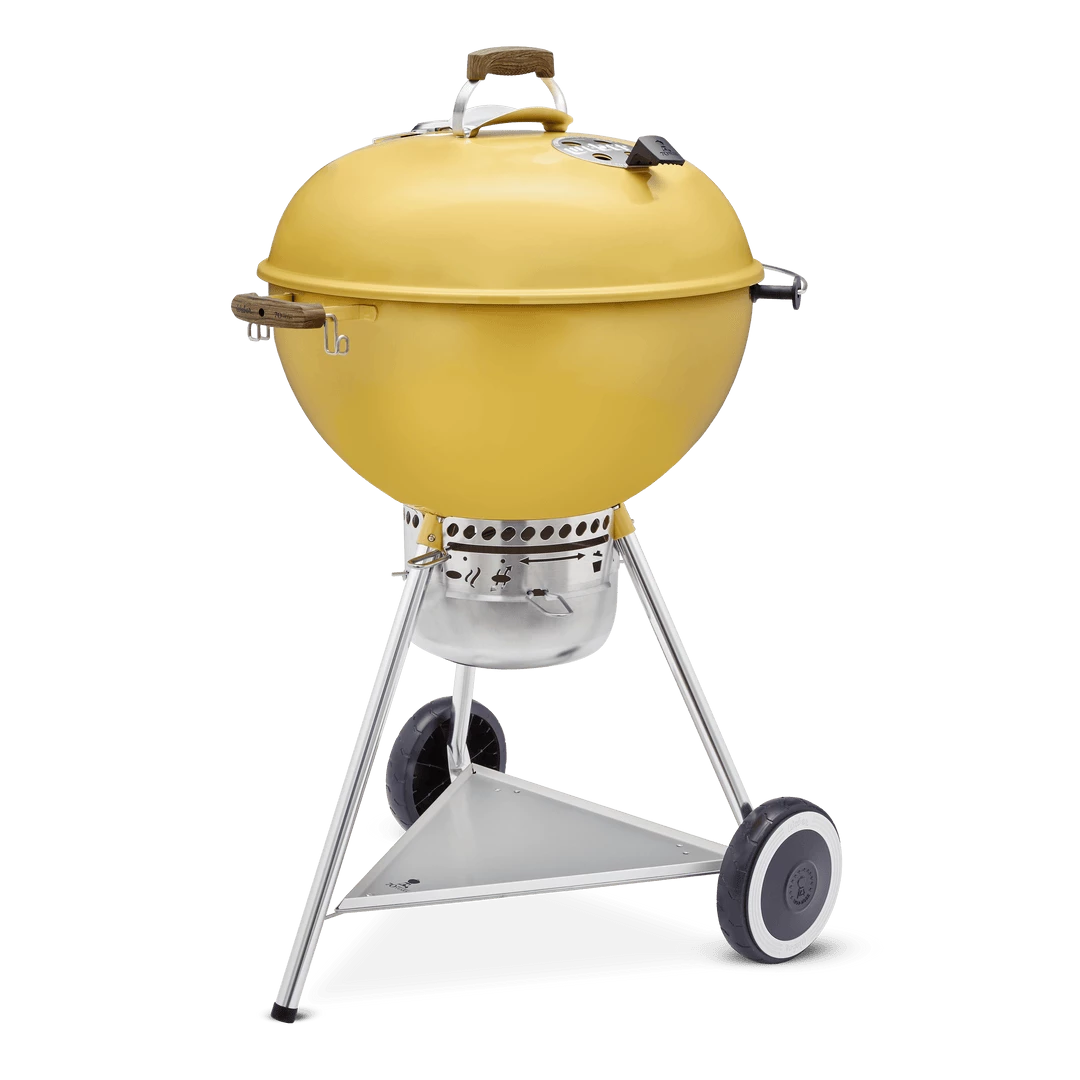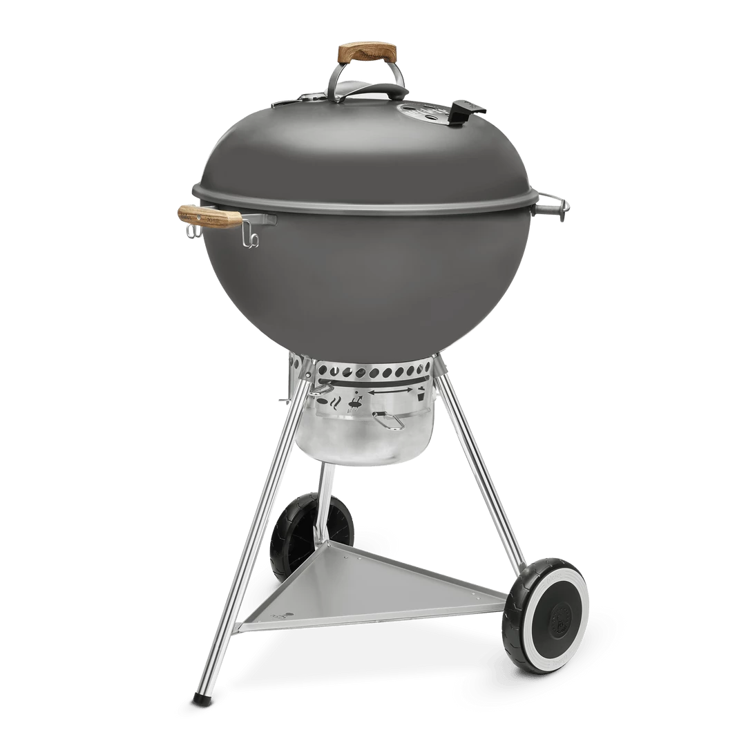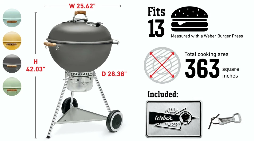 The limited-edition 70th Anniversary Kettle is a high-quality Weber kettle you’ve come to expect combined with nostalgic and modern features. Nods to different eras of Weber’s history can be found throughout its thoughtfully detailed exterior. Hand-enameled Hollywood Gray, is reminiscent of classic films from the 1950s era when the kettle originated. Other retro features include a solid bottom utility tray for storage, a ‘50s hood-ornament themed lid thermometer, white-walled wheels, and wood-like nylon handles. All of it comes together to create a grilling experience worthy of celebration.