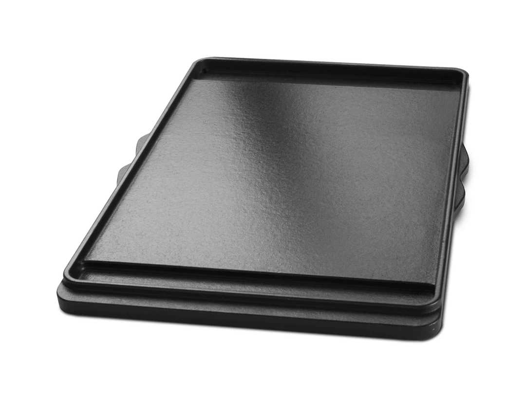 This porcelain-enameled cast iron griddle is perfect for making pancakes in the morning or fajitas for dinner. It’s also great for grilling delicate foods that would typically fall through the grates, like fish and veggies. The double-sided griddle features a smooth side and a ribbed side. Both surfaces provide ultimate heat retention and distribution, ensuring evenly cooked food.