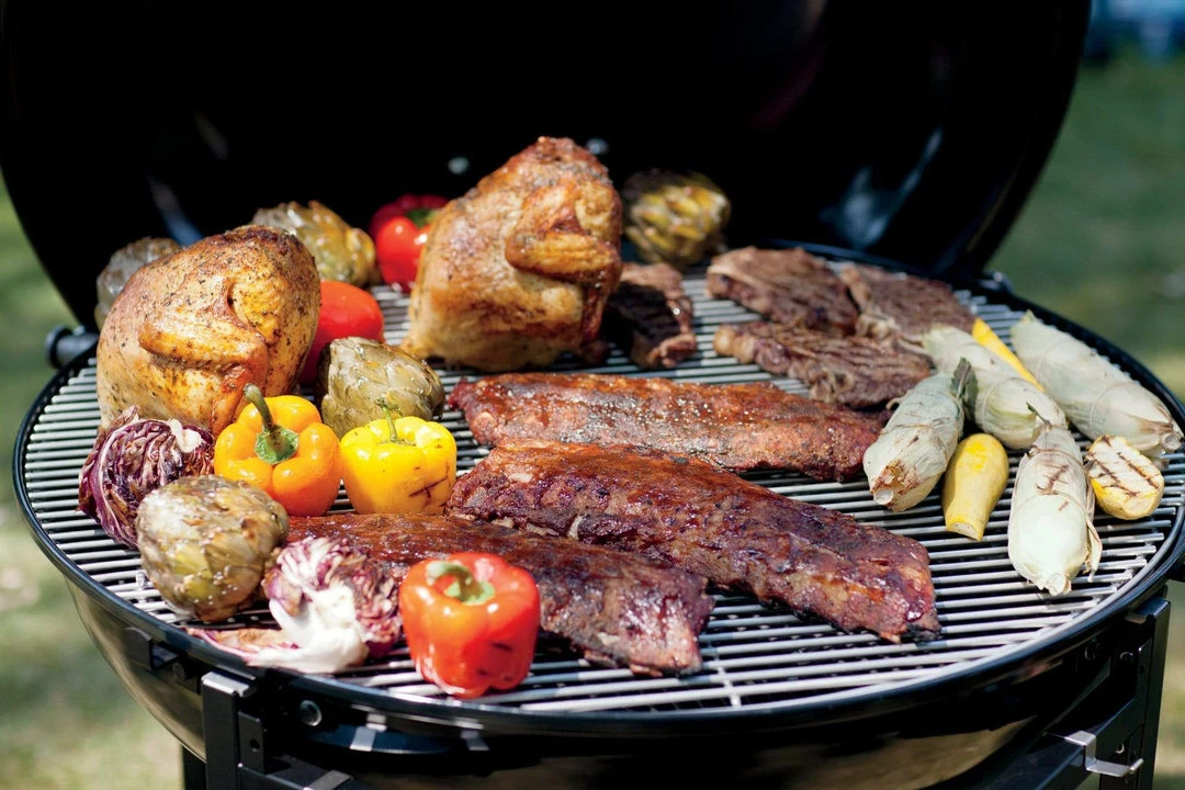 A yard full of friends, tables loaded down with food, and great grilling music wafting through the air. The enormous capacity of the Ranch Kettle charcoal grill sets the tone for a party that will last until the sun comes up.