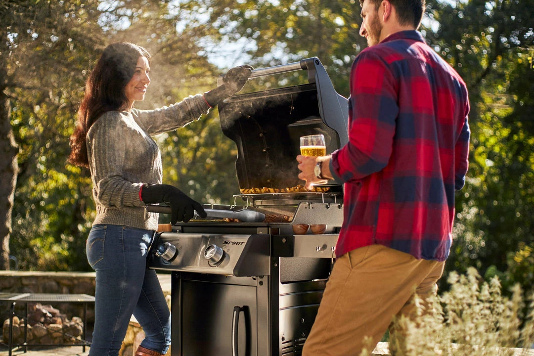 The Spirit E-215 two burner gas grill was built to fit smaller spaces, perfect for a patio or balcony. It comes equipped with two foldable side tables for placing serving trays and spices, and tool hooks so that grilling tools are always at your fingertips.
