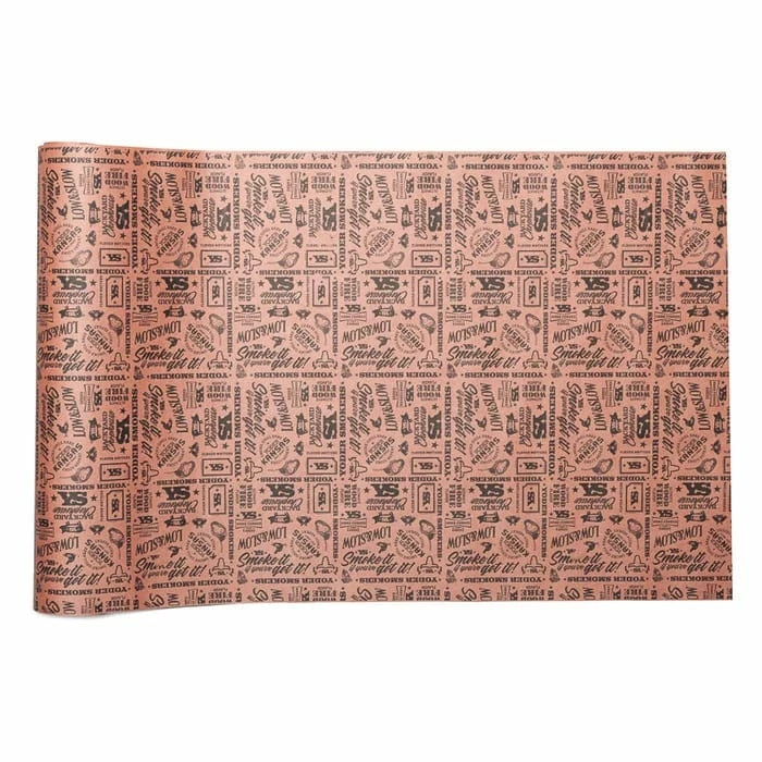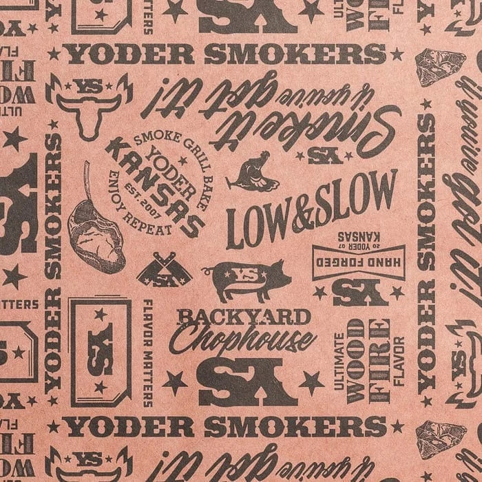 Yoder Smokers Butcher Paper Show your Yoder pride with specially designed butcher paper for Yoder Smokers. This heavy-duty kraft-style paper can be used to wrap proteins or use it to line trays for a fun presentation. You can even use it to wrap gifts! Dimensions: 24″ x 150′