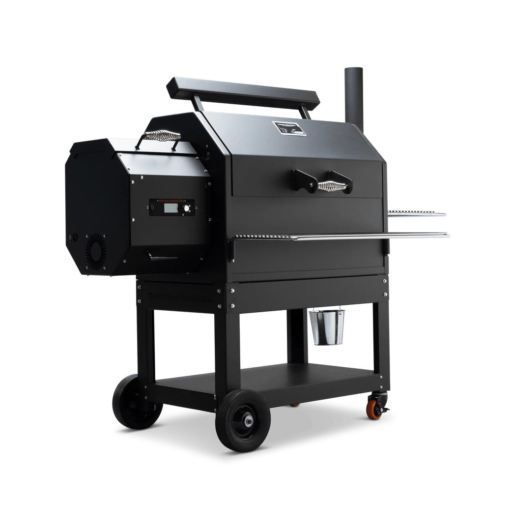 Yoder Smokers Pellet Grills come standard with the Yoder Smokers ACS Control System featuring Wi-Fi and Bluetooth connectivity, as well as two integrated food probes for monitoring. A ceramic ignition system, 10-gauge steel construction, and custom orange casters are also standard on S-Series pellet grills.